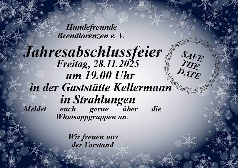 unsere diesjährige ordentliche Mitgliederversammlung findet statt am Samstag, 19.07.2025 um 15.00Uhr am Hundeplatz in Brendlorenzen statt.